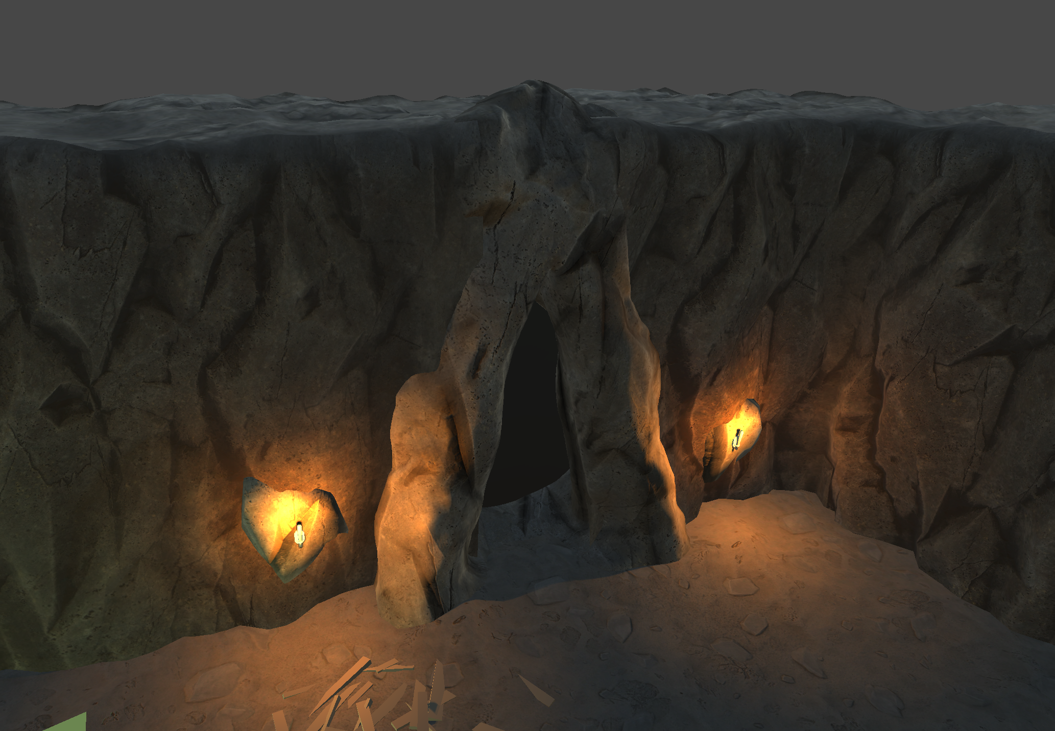 - Torches: placeholders for torches were created this week. These will be positioned on cave walls and will act as signifiers that this fantasy world is rooted in mystery and adventure. Torches also give the impression that although this world is magical, it is also fairly primitive.