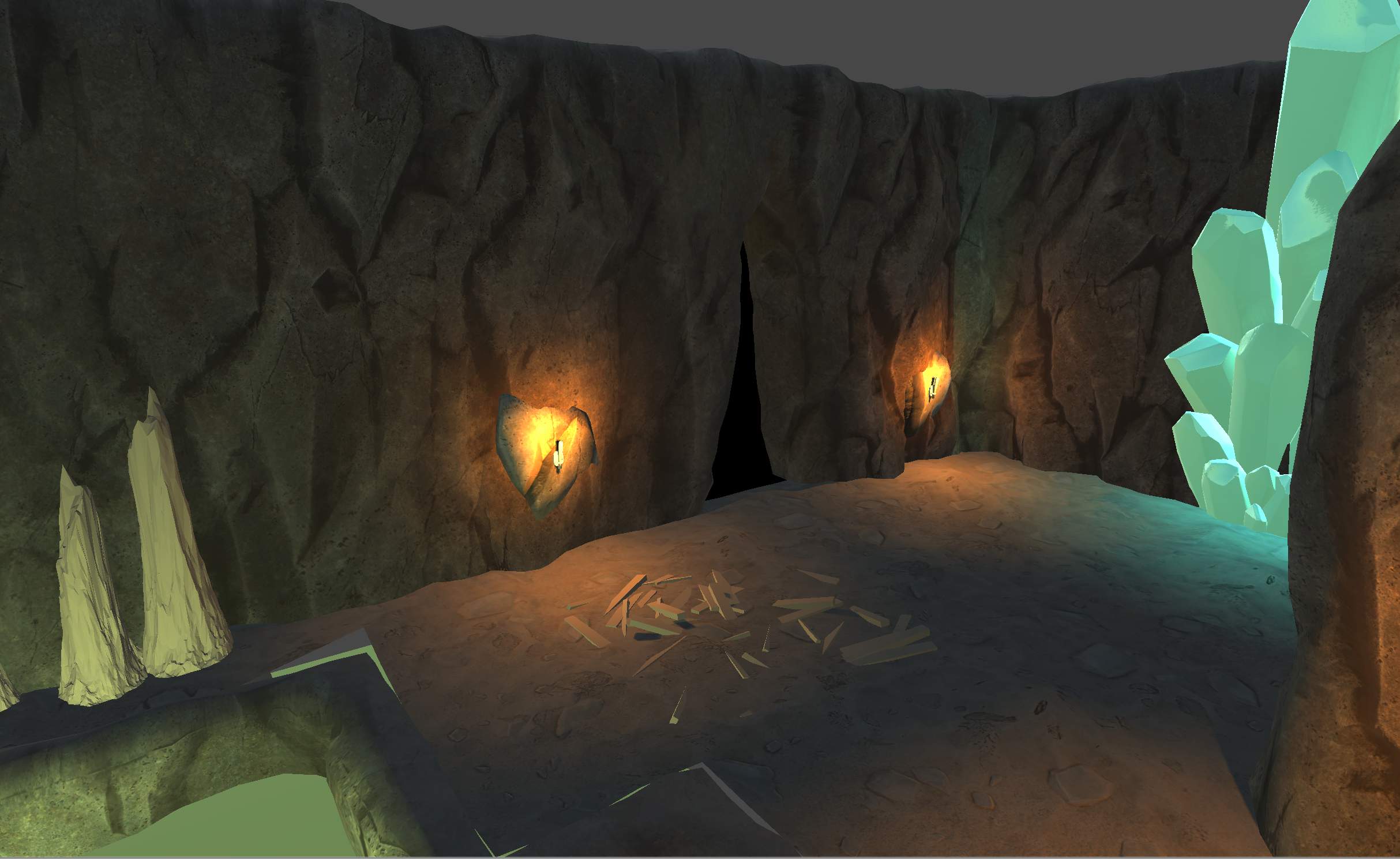 - The ambient lighting for the caves was made gloomier so that it complemented its surrounding environment and gave a more effective appearance of a cave.