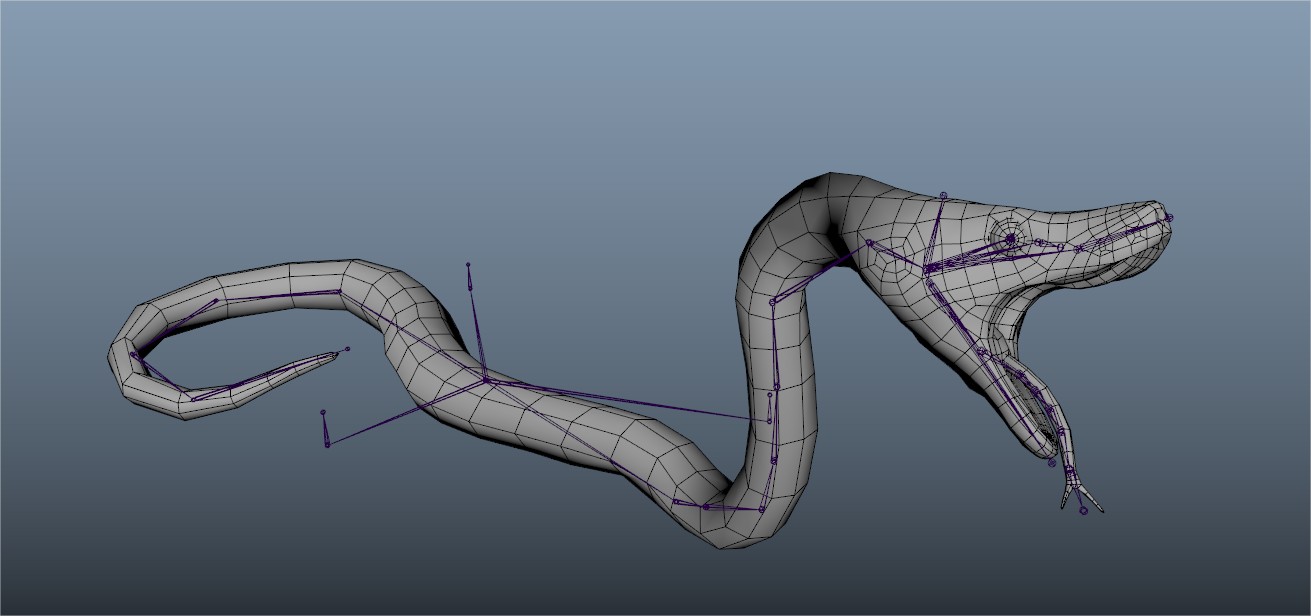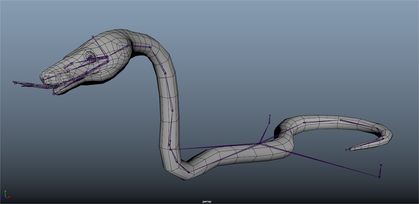 In this past week, our animator has continued with rigging by setting up the rig for one of Erendorn’s fearsome beasts: the snake. First, she researched the different processes used to animate snakes so that she could find an effective way of animating it realistically. She then: